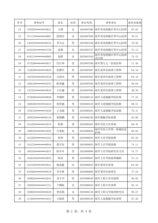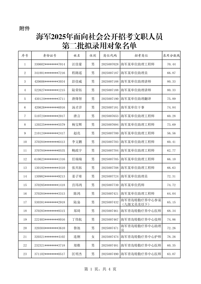原文標(biāo)題:公示海軍2025年面向社會公開招考文職人員第二批擬錄用對象名單