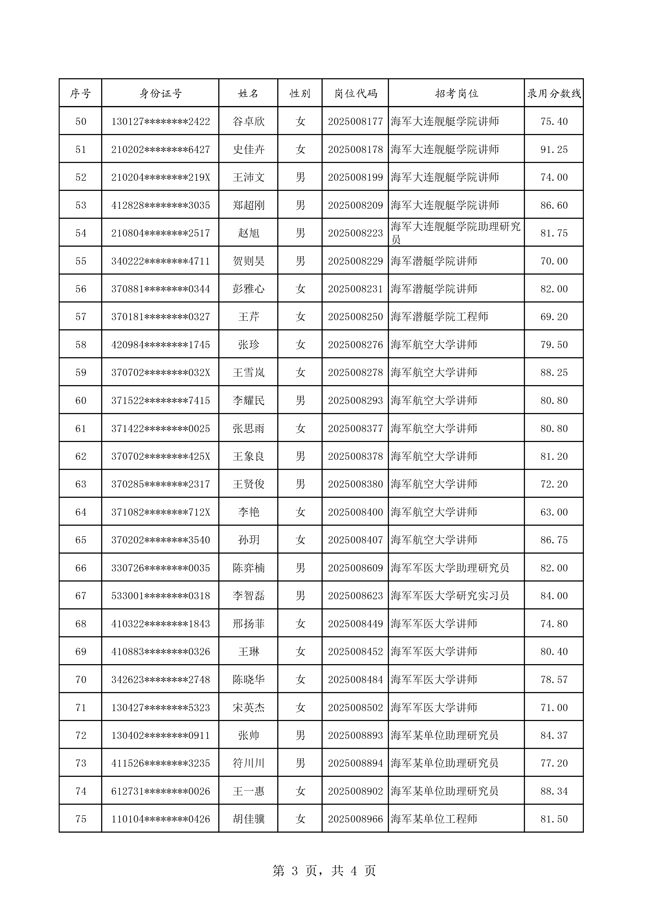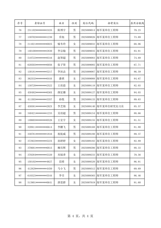2025年武裝部文職人員擬錄用名單(含上岸分?jǐn)?shù)線) 2025-10-09