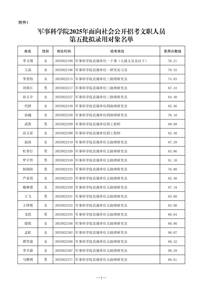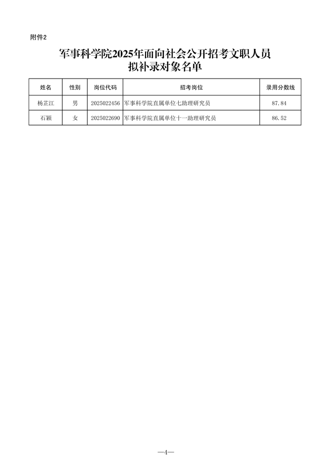 原文標(biāo)題:公示軍事科學(xué)院2025年面向社會(huì)公開招考文職人員第五批擬錄用對象、補(bǔ)錄對象名單