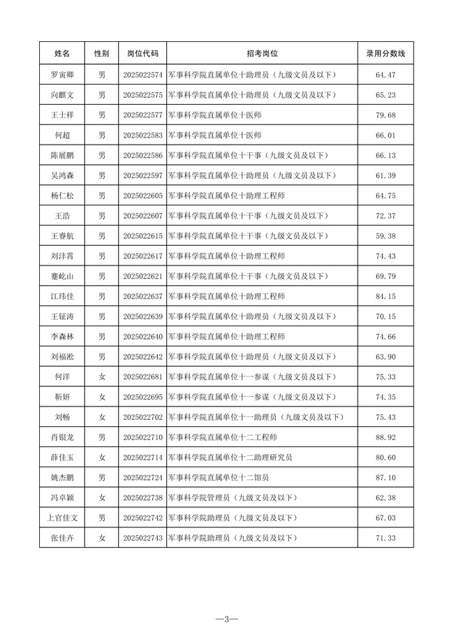 2025年武裝部文職人員擬錄用名單(含上岸分?jǐn)?shù)線) 2025-10-09