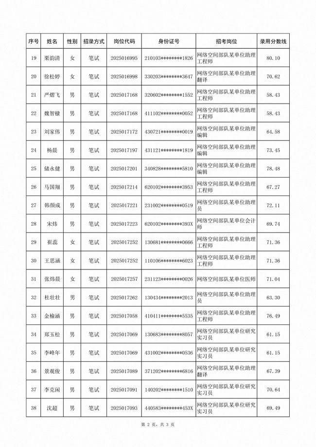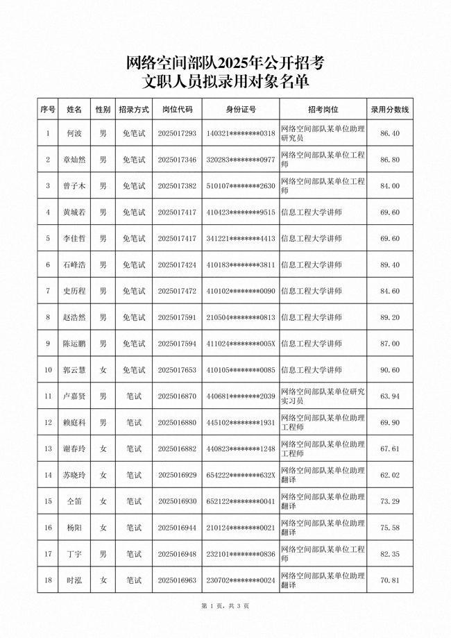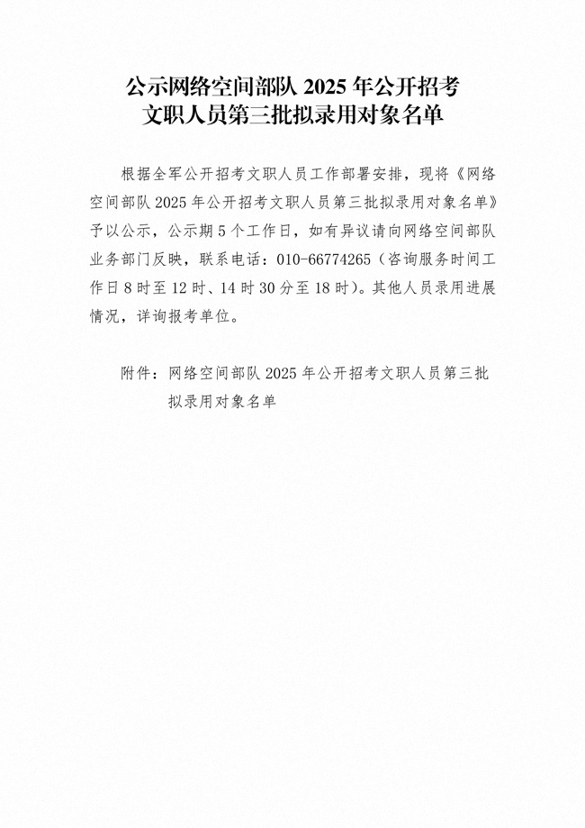 原文標(biāo)題:公示網(wǎng)絡(luò)空間部隊(duì)2025年公開招考文職人員第三批擬錄用對(duì)象名單