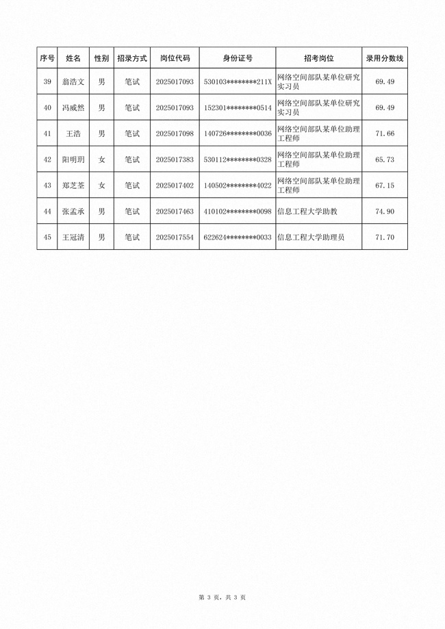 2025年武裝部文職人員擬錄用名單(含上岸分?jǐn)?shù)線) 2025-10-09