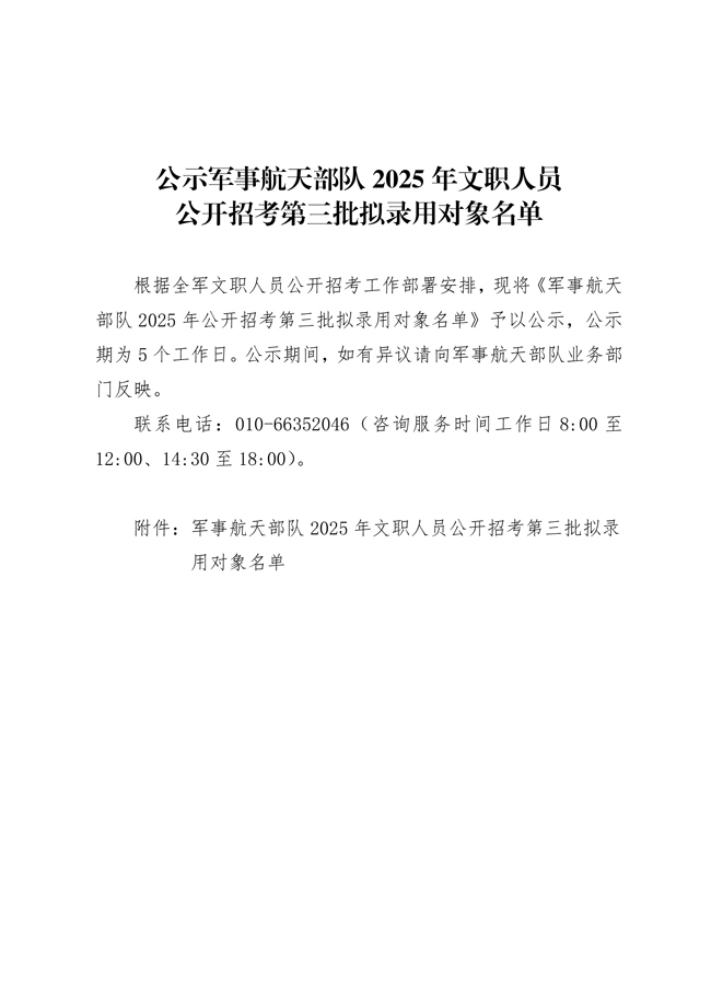 原文標題:公示軍事航天部隊2025年文職人員公開招考第三批擬錄用對象名單