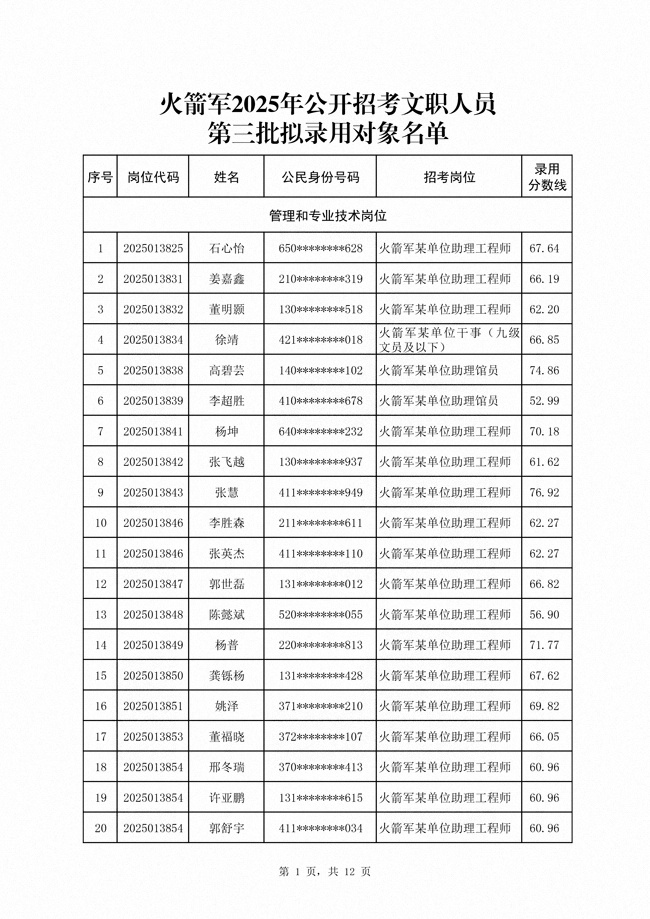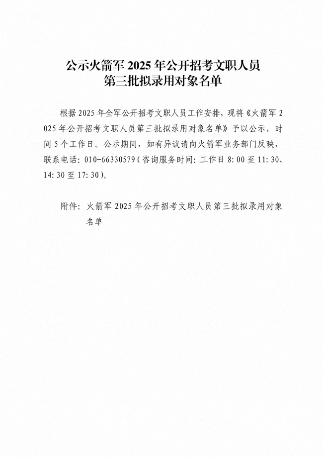 原文標(biāo)題:公示火箭軍2025年公開(kāi)招考文職人員 第三批擬錄用對(duì)象名單