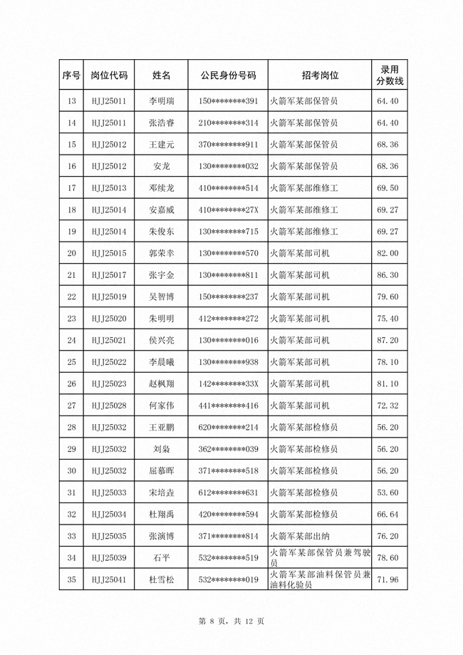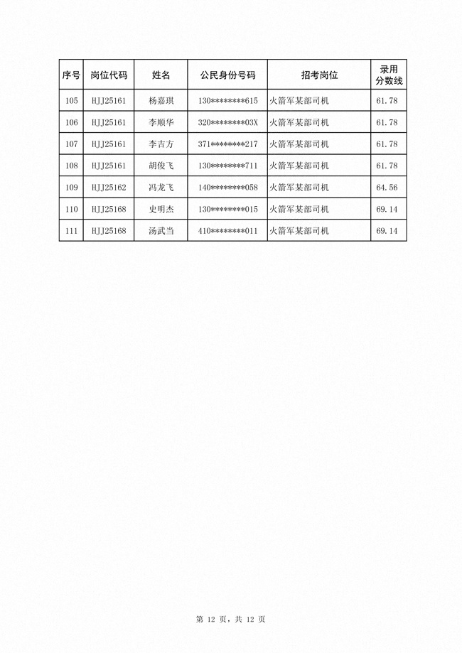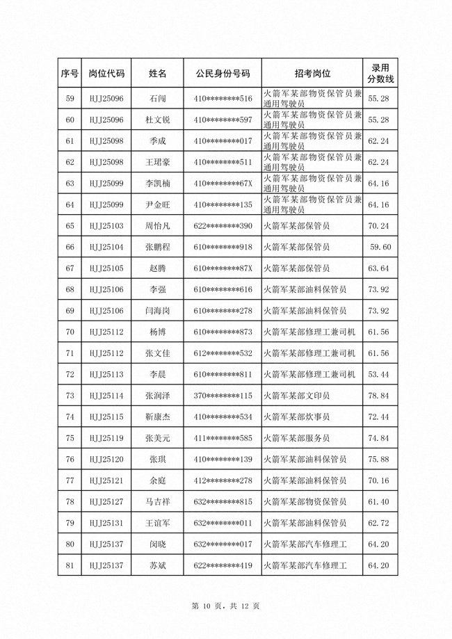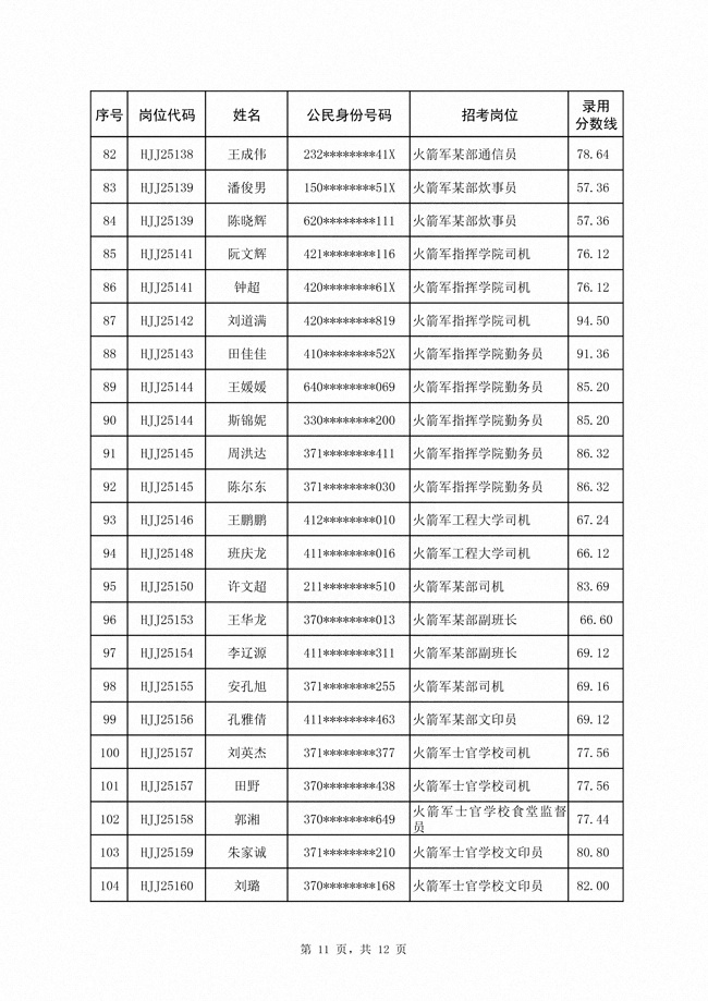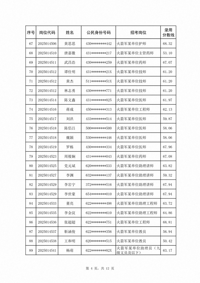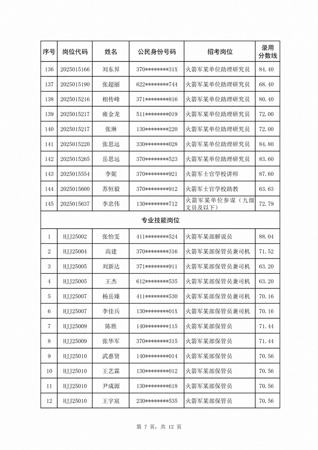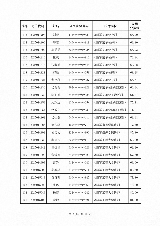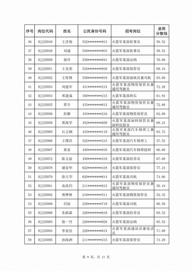 2025年武裝部文職人員擬錄用名單(含上岸分?jǐn)?shù)線) 2025-10-09