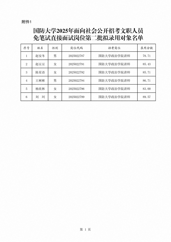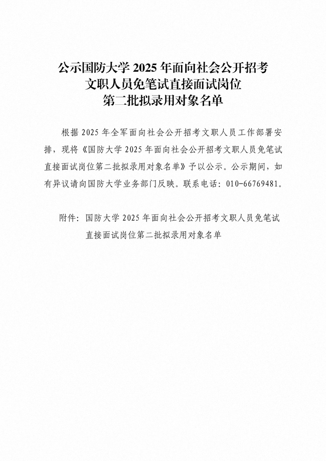 原文標題:公示國防大學2025年面向社會公開招考文職人員免筆試直接面試崗位第二批擬錄用對象名單
