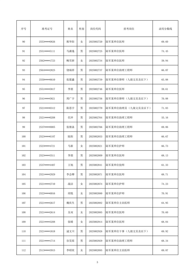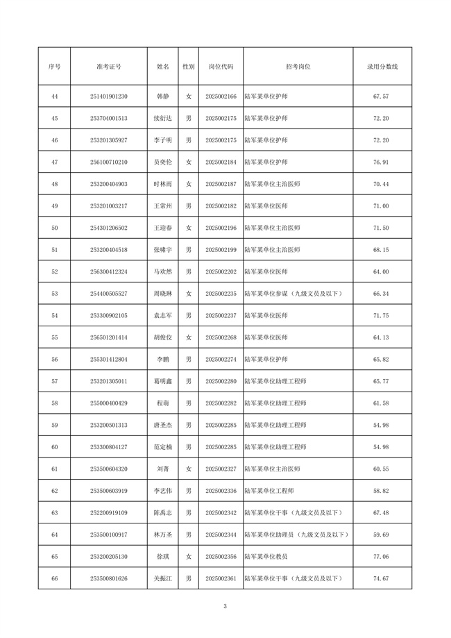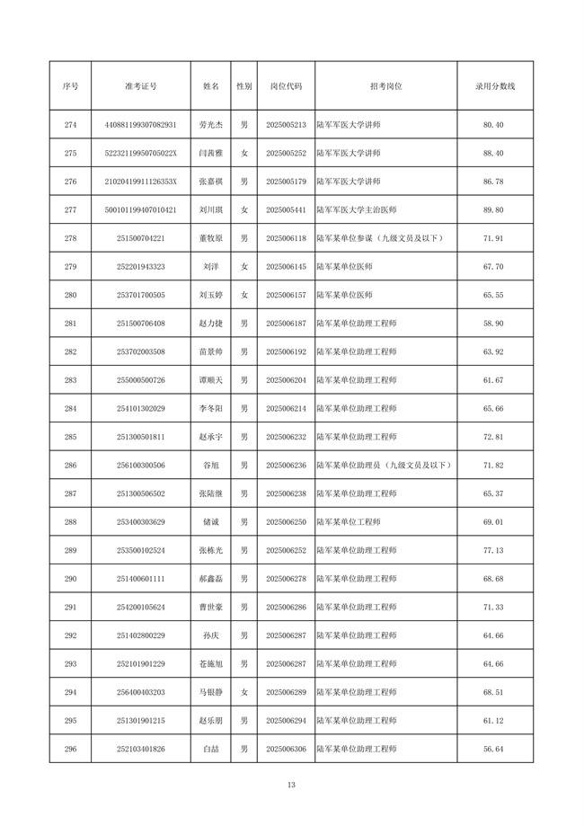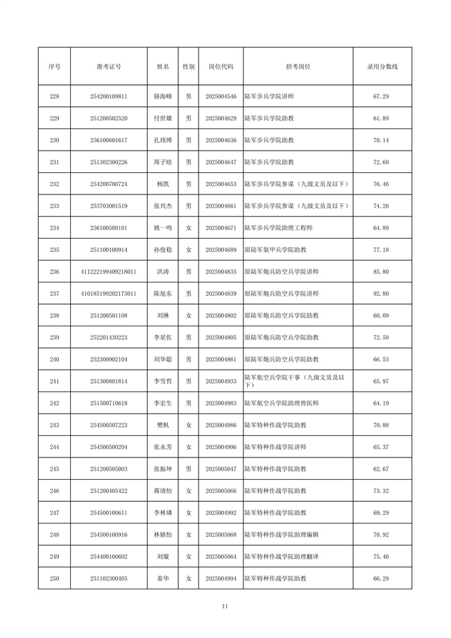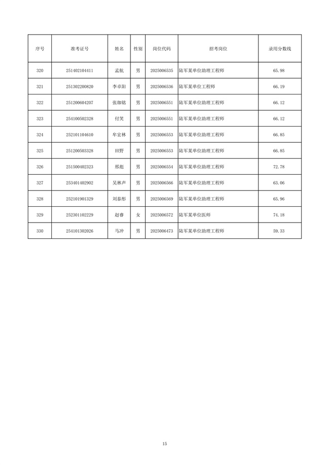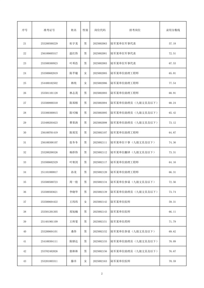2025年武裝部文職人員擬錄用名單(含上岸分數(shù)線) 2025-10-09