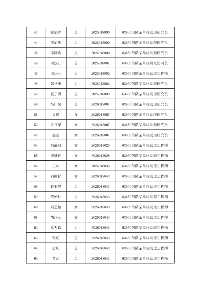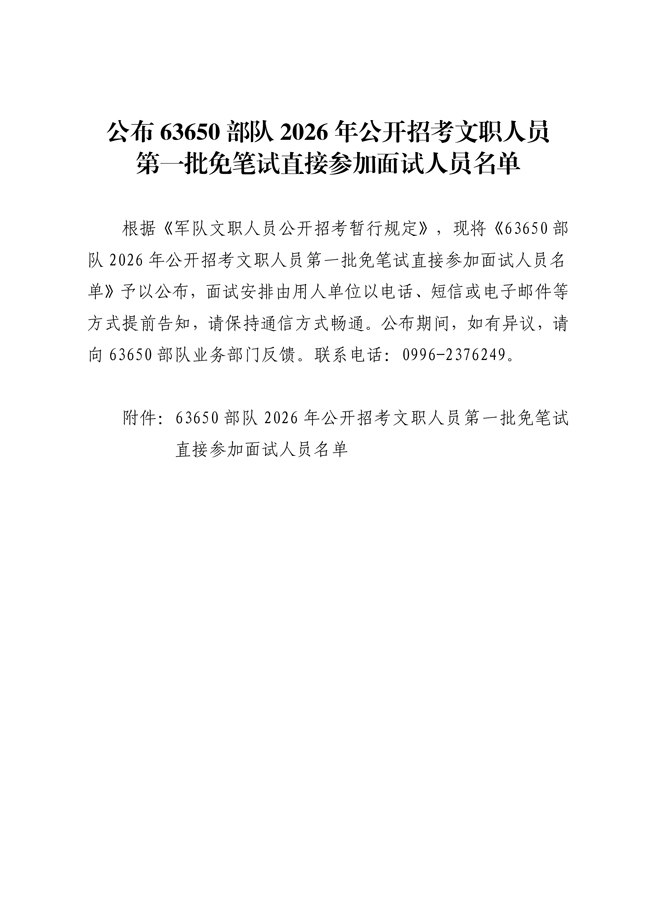 原文標題:公布63650部隊2026年公開招考文職人員第一批免筆試直接參加面試人員名單