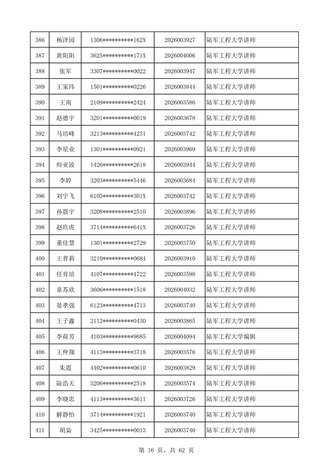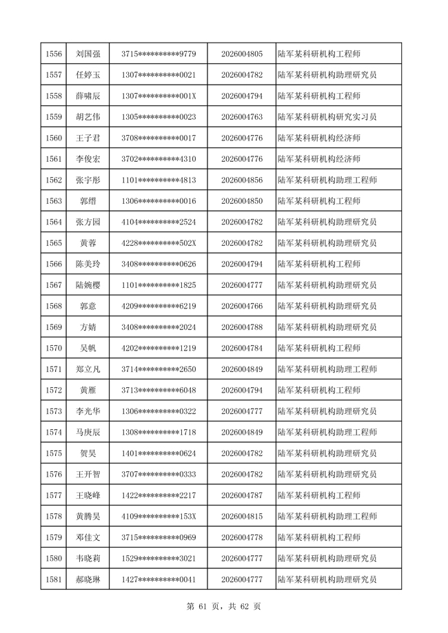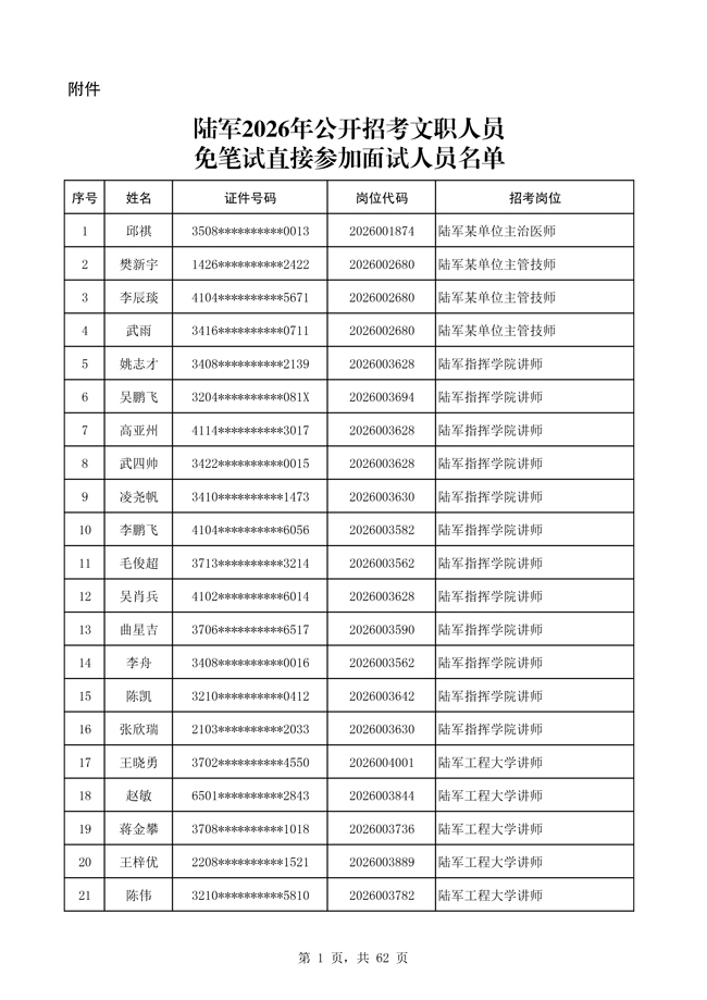 原文標題:公布陸軍2026年公開招考文職人員免筆試直接參加面試人員名單