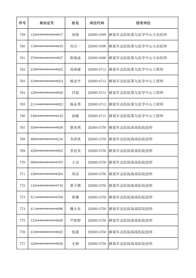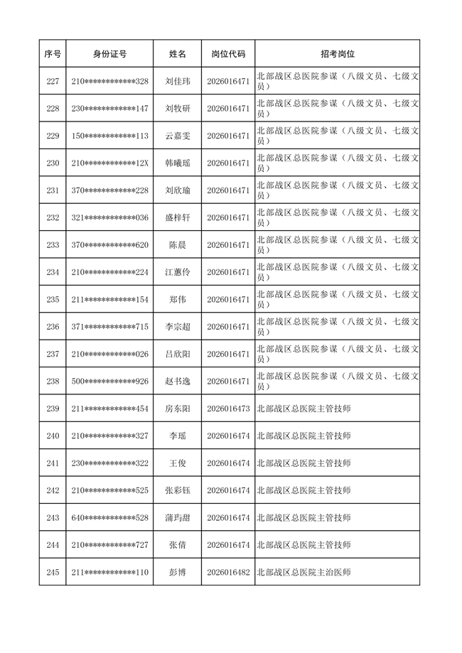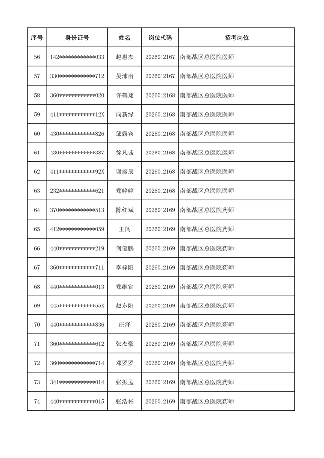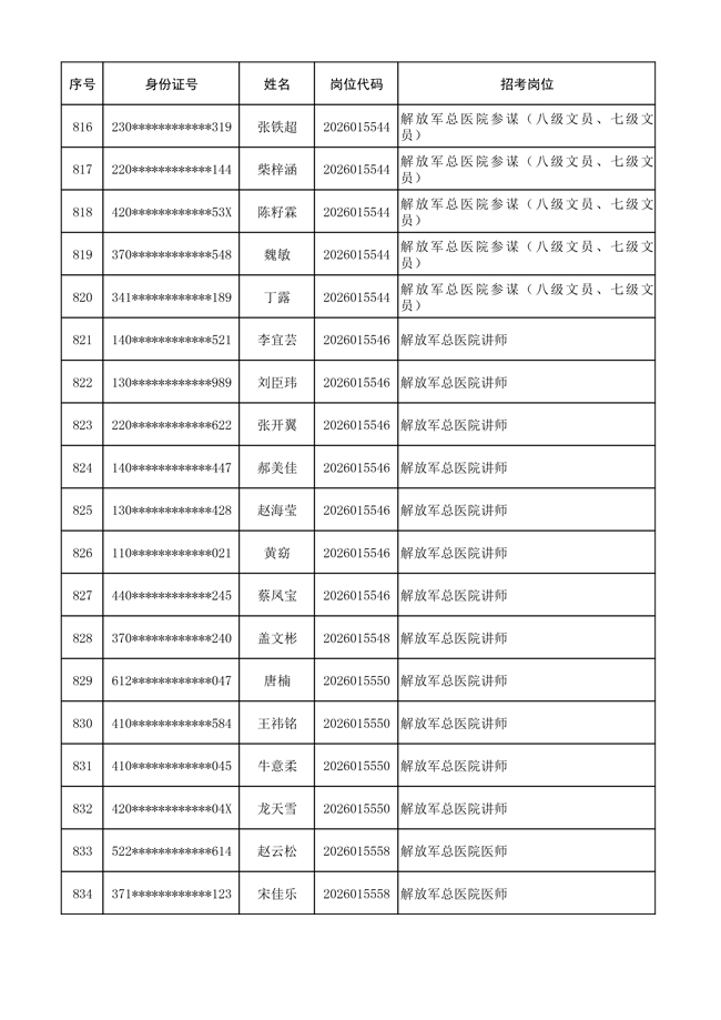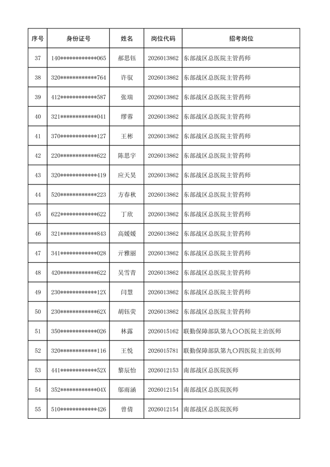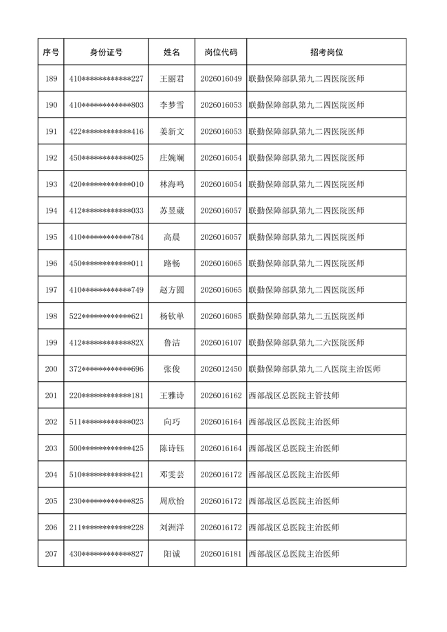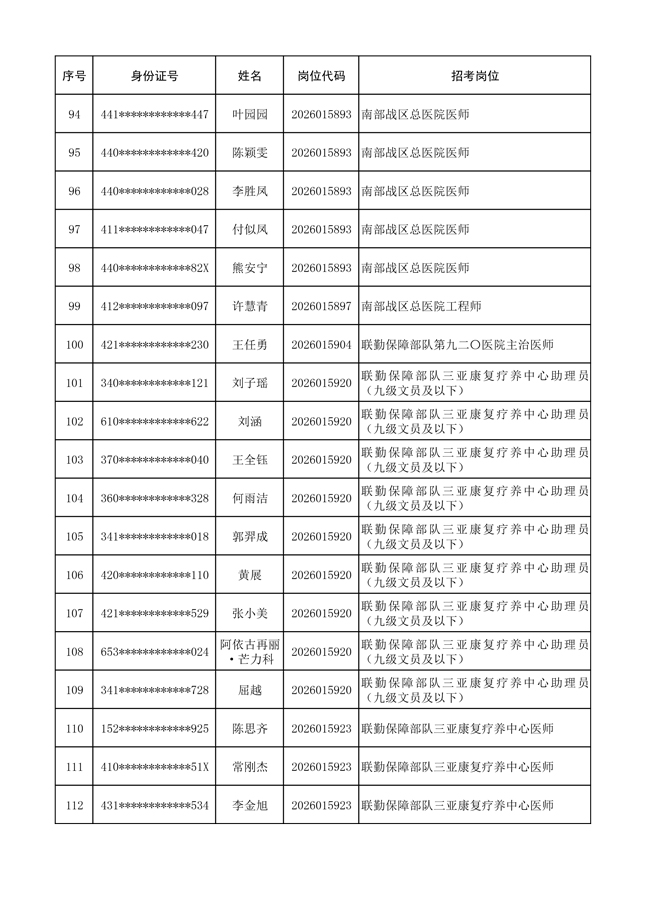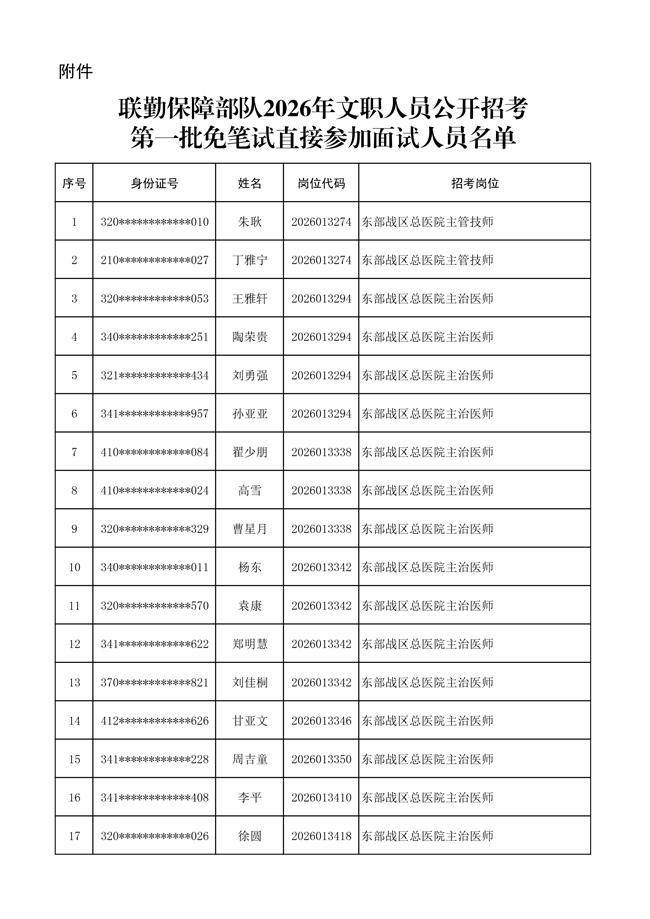 原文標(biāo)題:公布聯(lián)勤保障部隊(duì)2026年文職人員公開招考 第一批免筆試直接參加面試人員名單