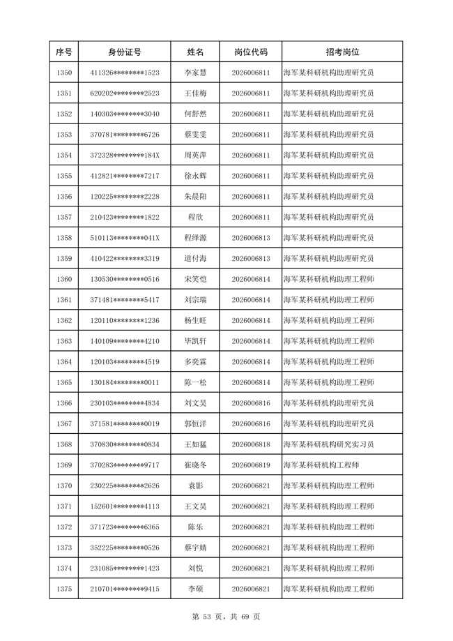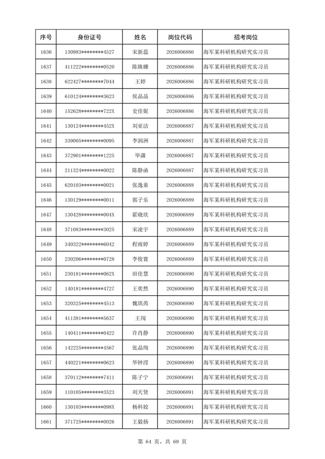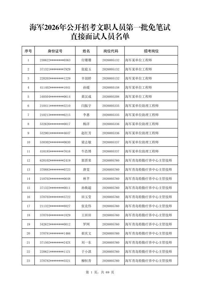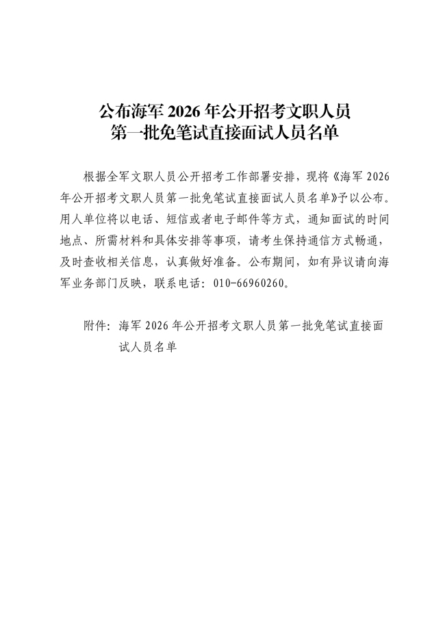 原文標(biāo)題:公布海軍2026年公開招考文職人員 第一批免筆試直接面試人員名單