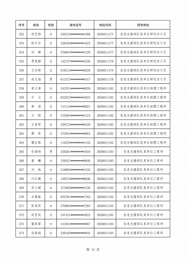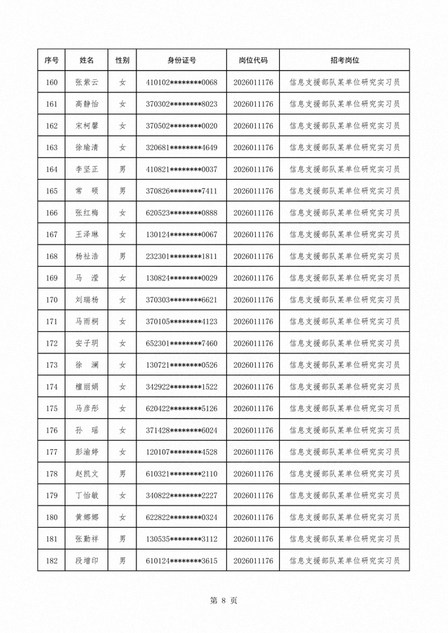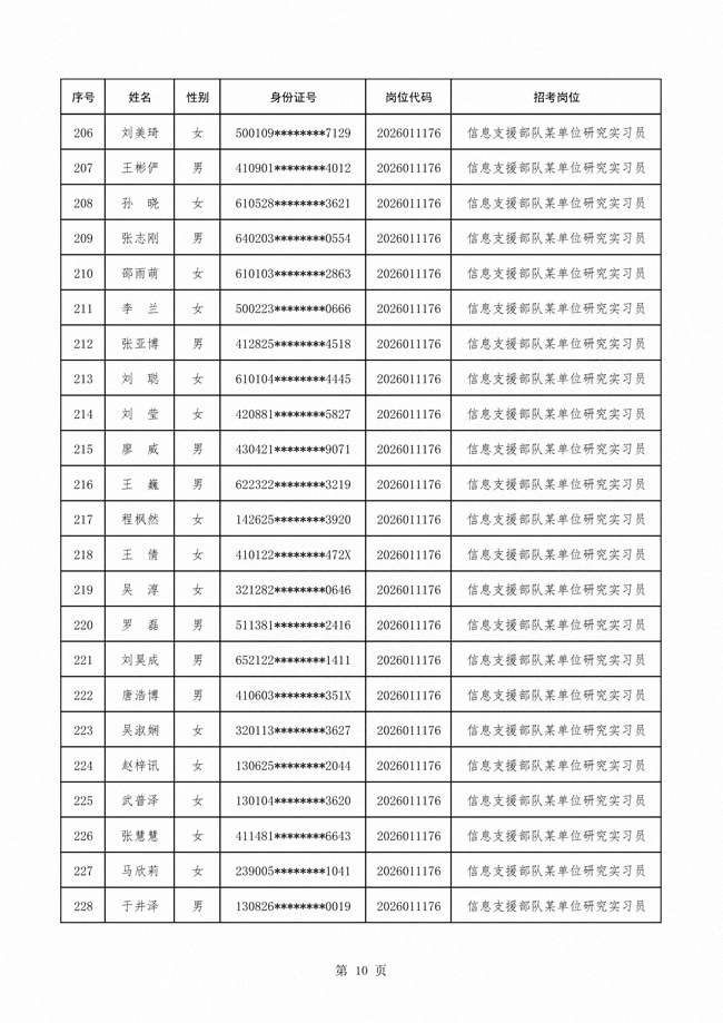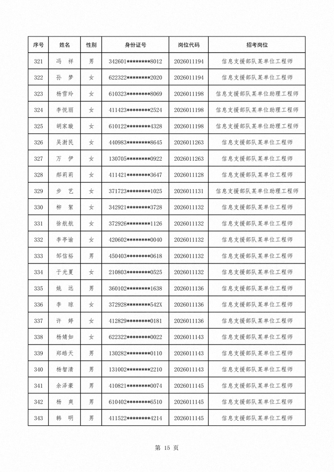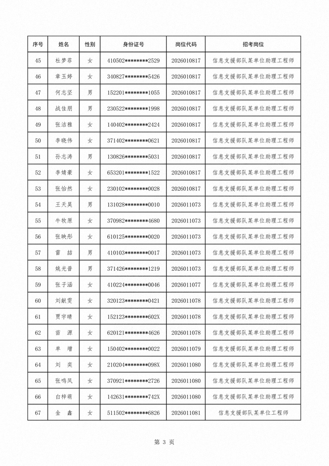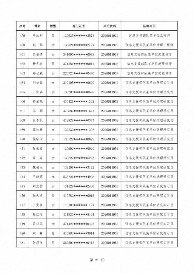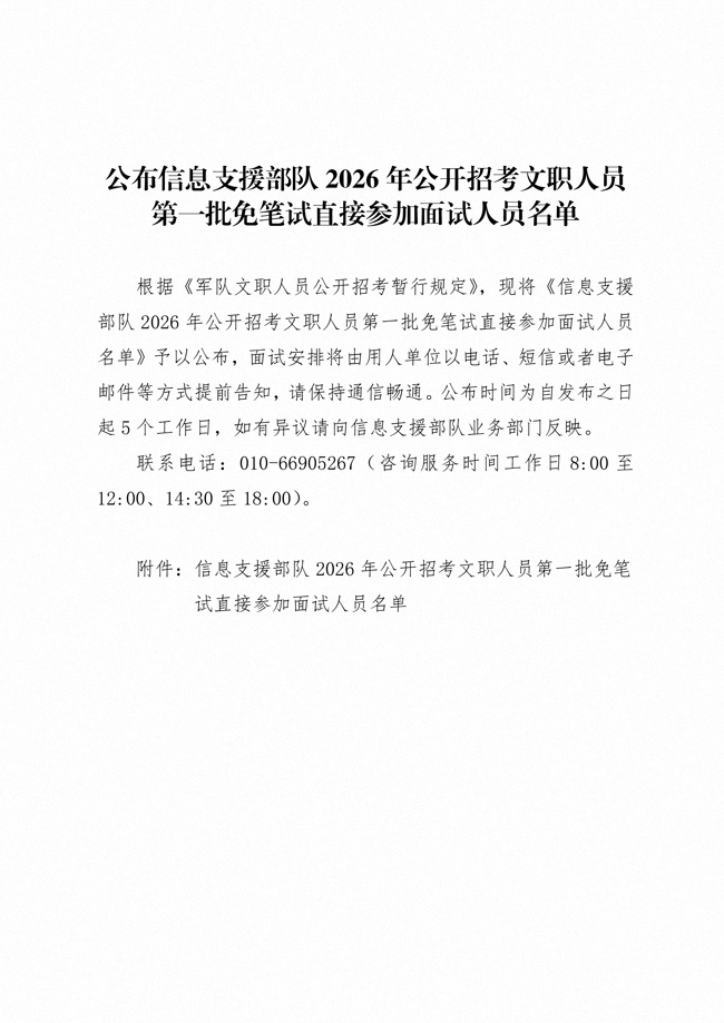 原文標(biāo)題:公布信息支援部隊2026年公開招考文職人員 第一批免筆試直接參加面試人員名單