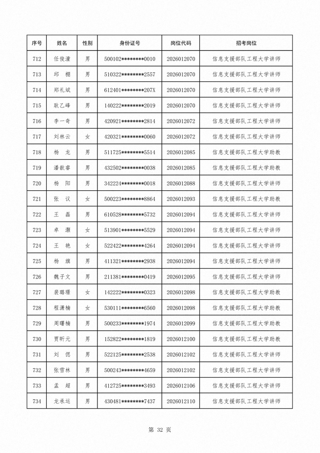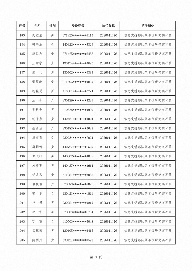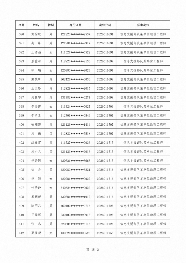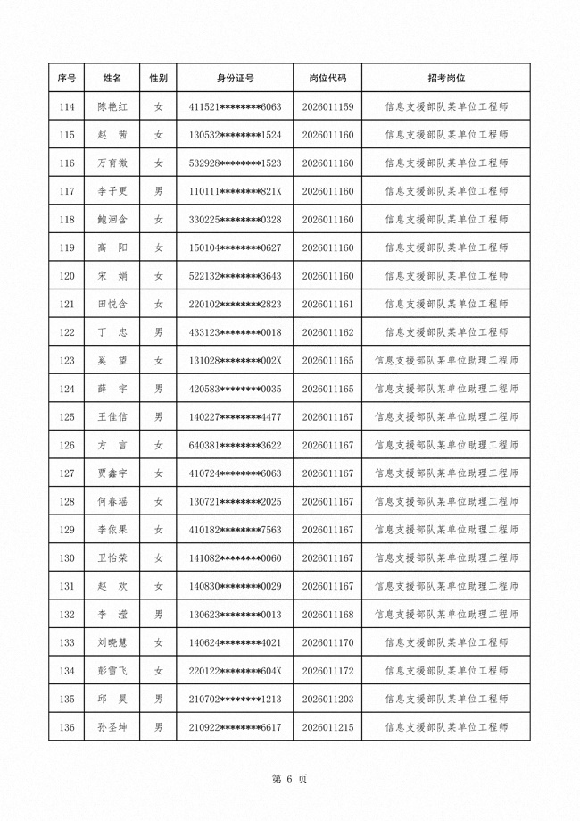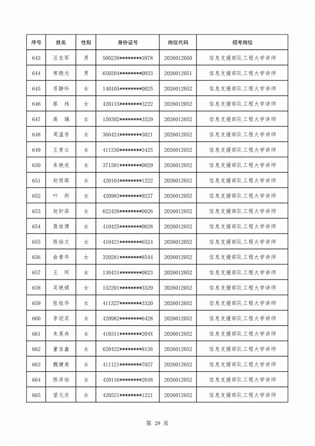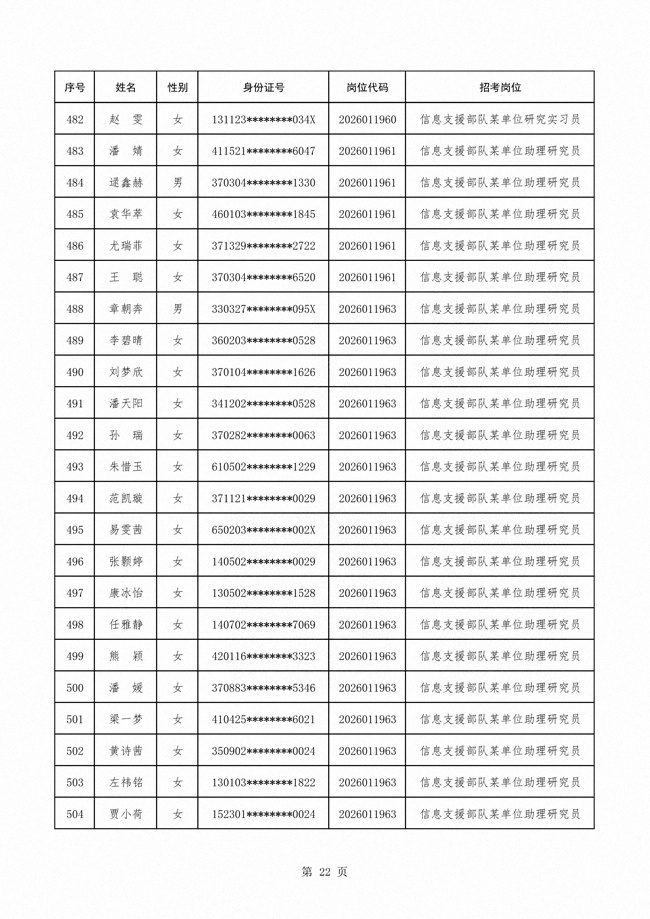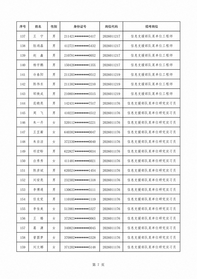 原文標(biāo)題:公布信息支援部隊2026年公開招考文職人員 第一批免筆試直接參加面試人員名單