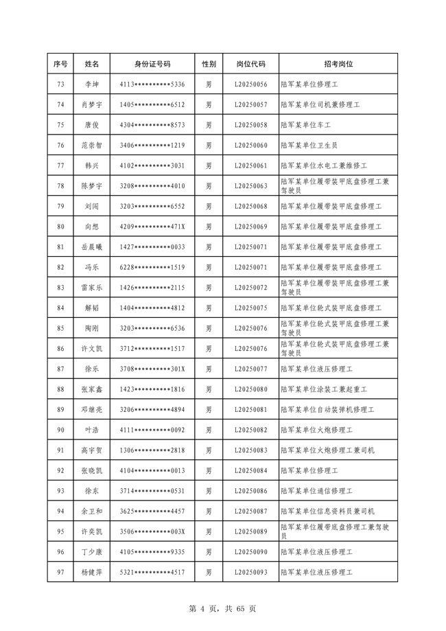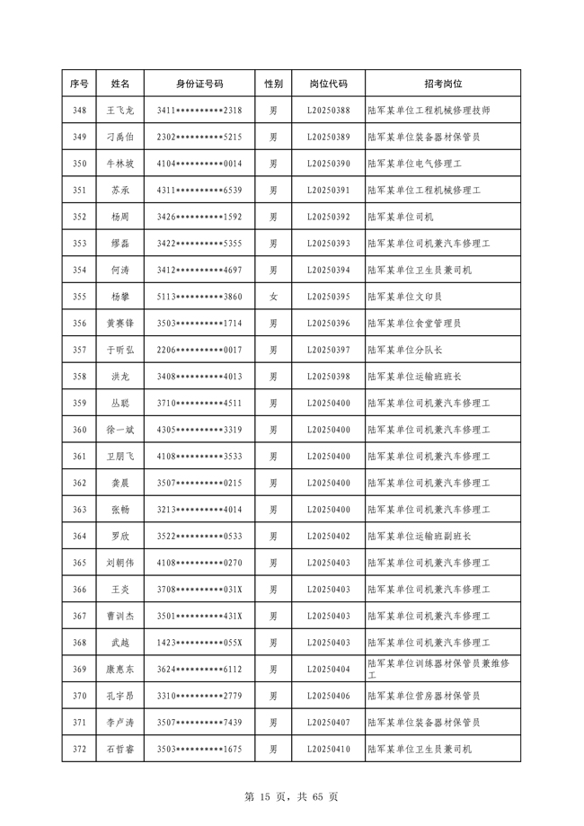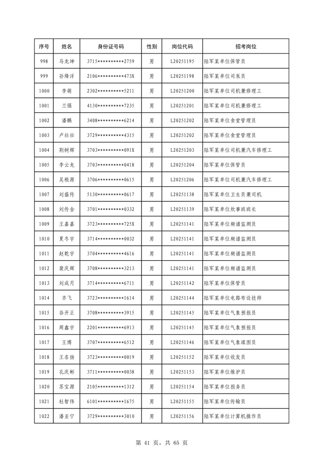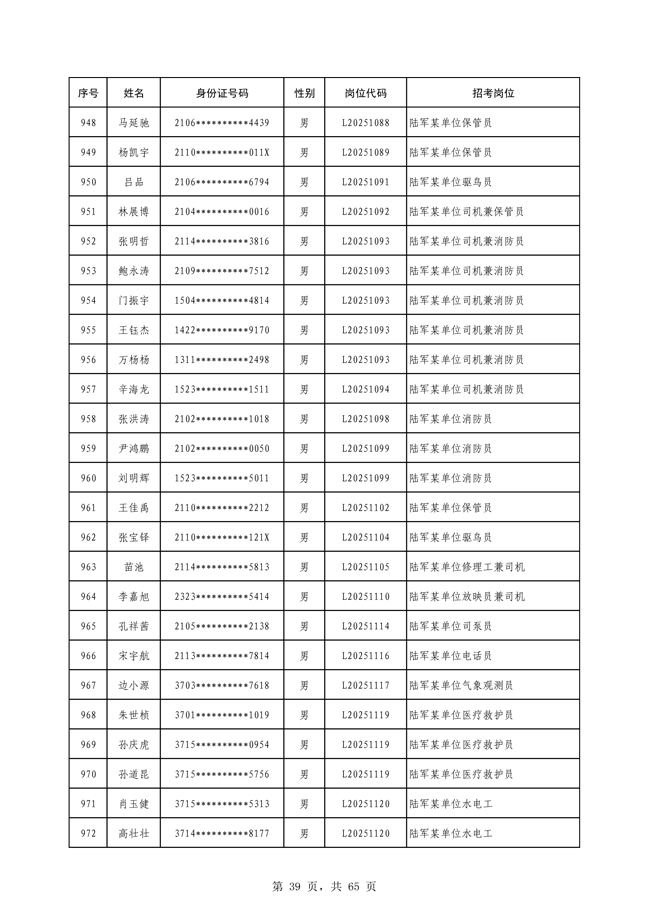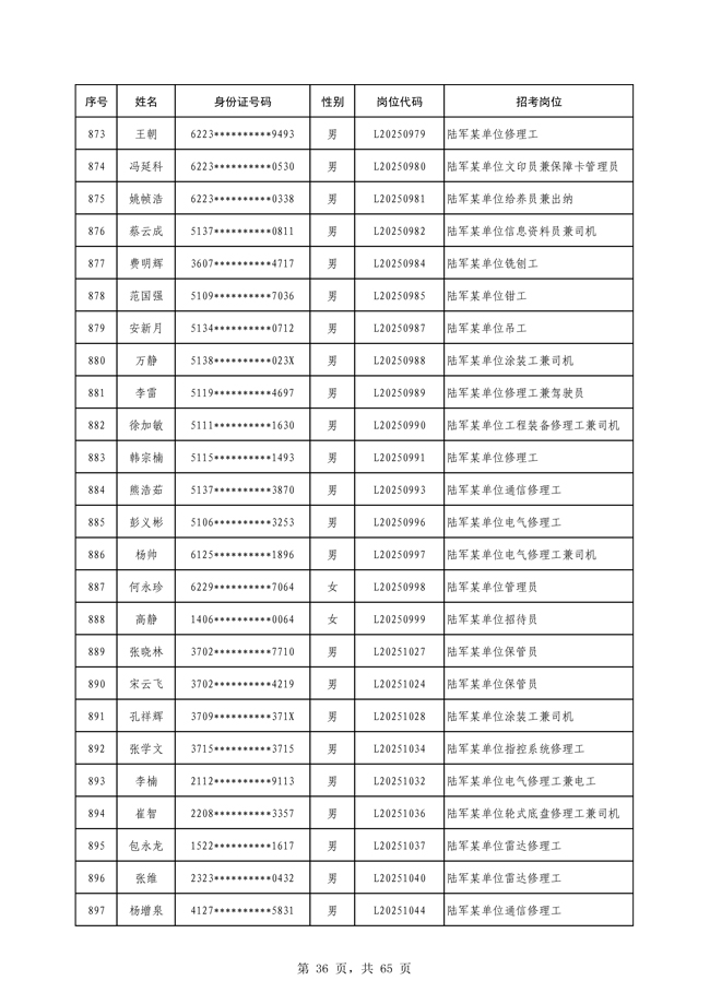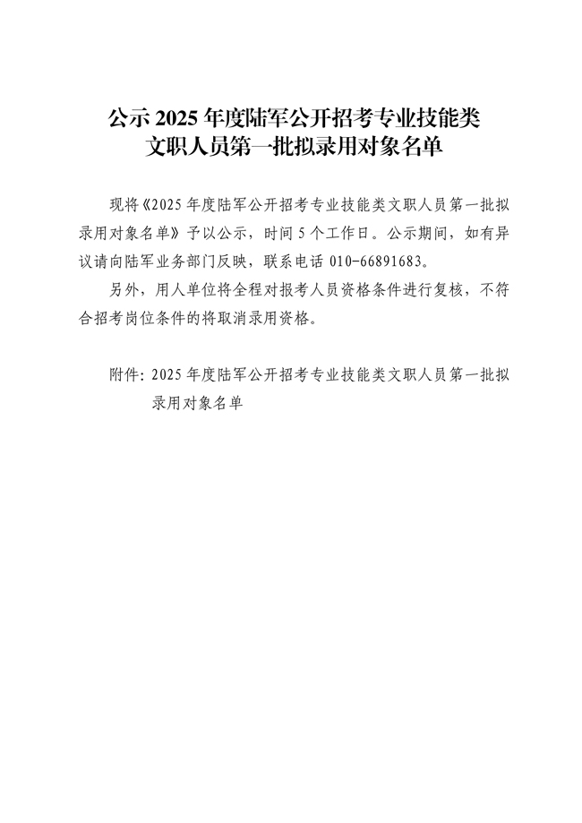 原文標(biāo)題:公示2025年度陸軍公開招考專業(yè)技能類文職人員第一批擬錄用對(duì)象名單