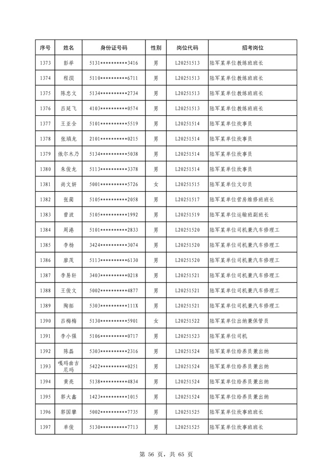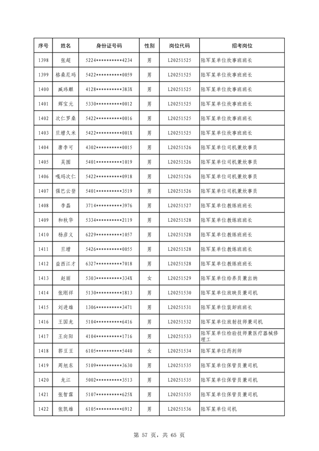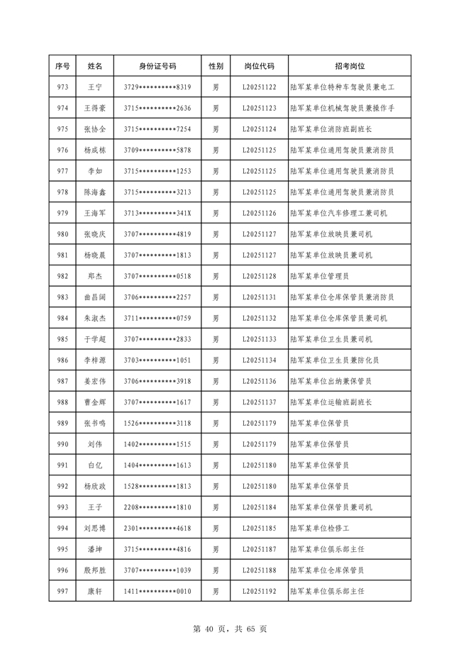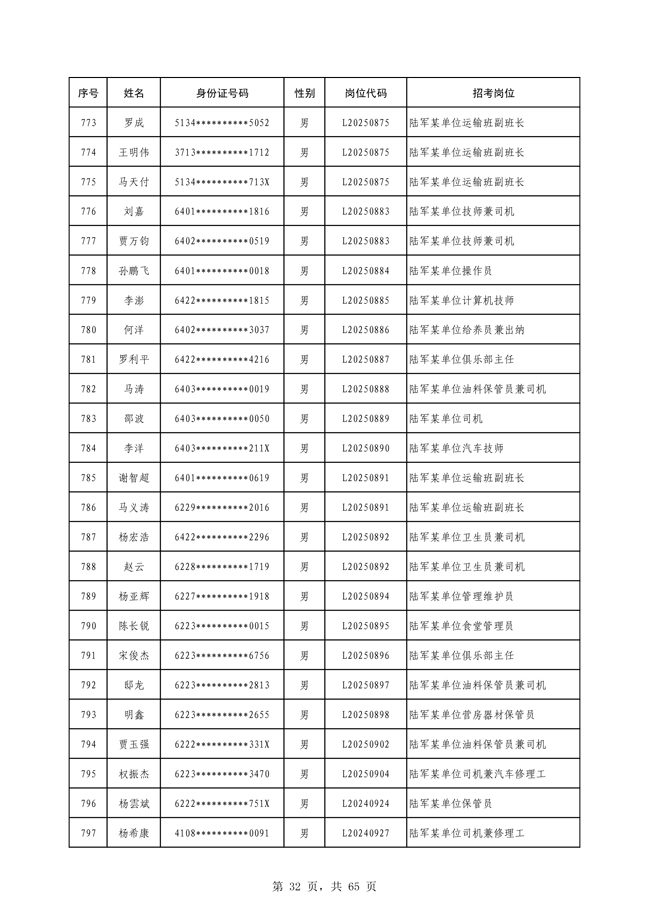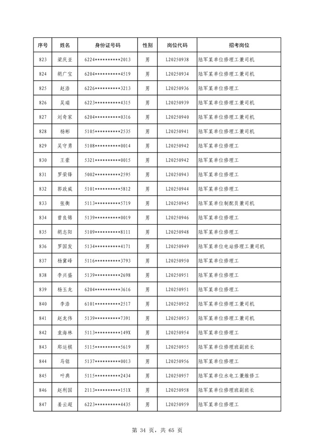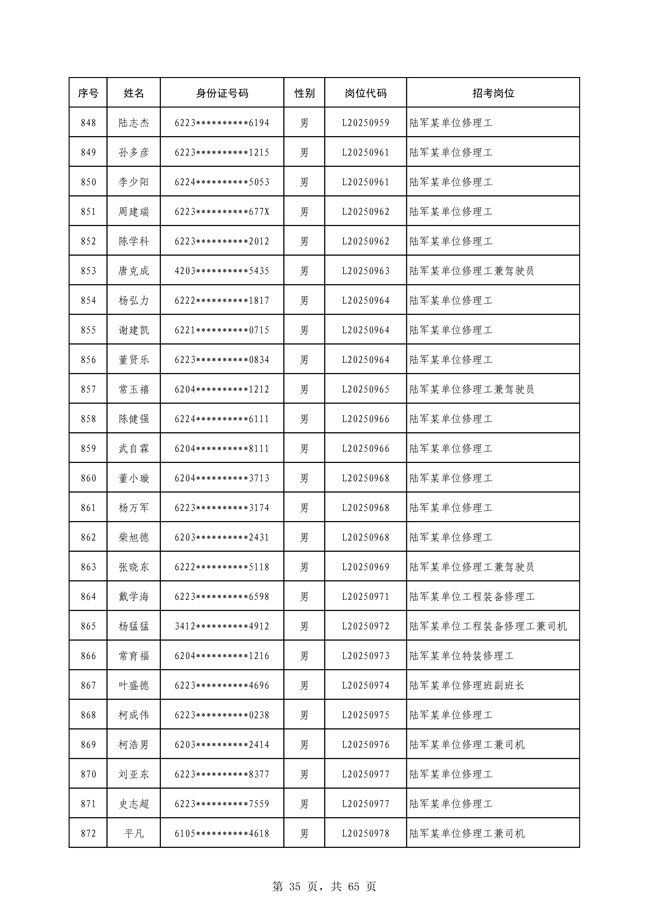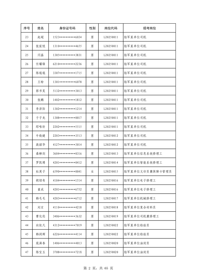原文標(biāo)題:公示2025年度陸軍公開招考專業(yè)技能類文職人員第一批擬錄用對(duì)象名單