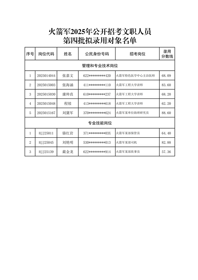 原文標(biāo)題:2025年火箭軍公開招考文職人員第四批擬錄用對象8人