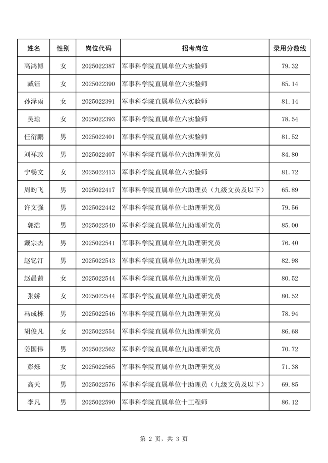 原文標題:公示軍事科學院2025年面向社會公開招考文職人員 第七批擬錄用對象、補錄對象、遞補錄用對象名單